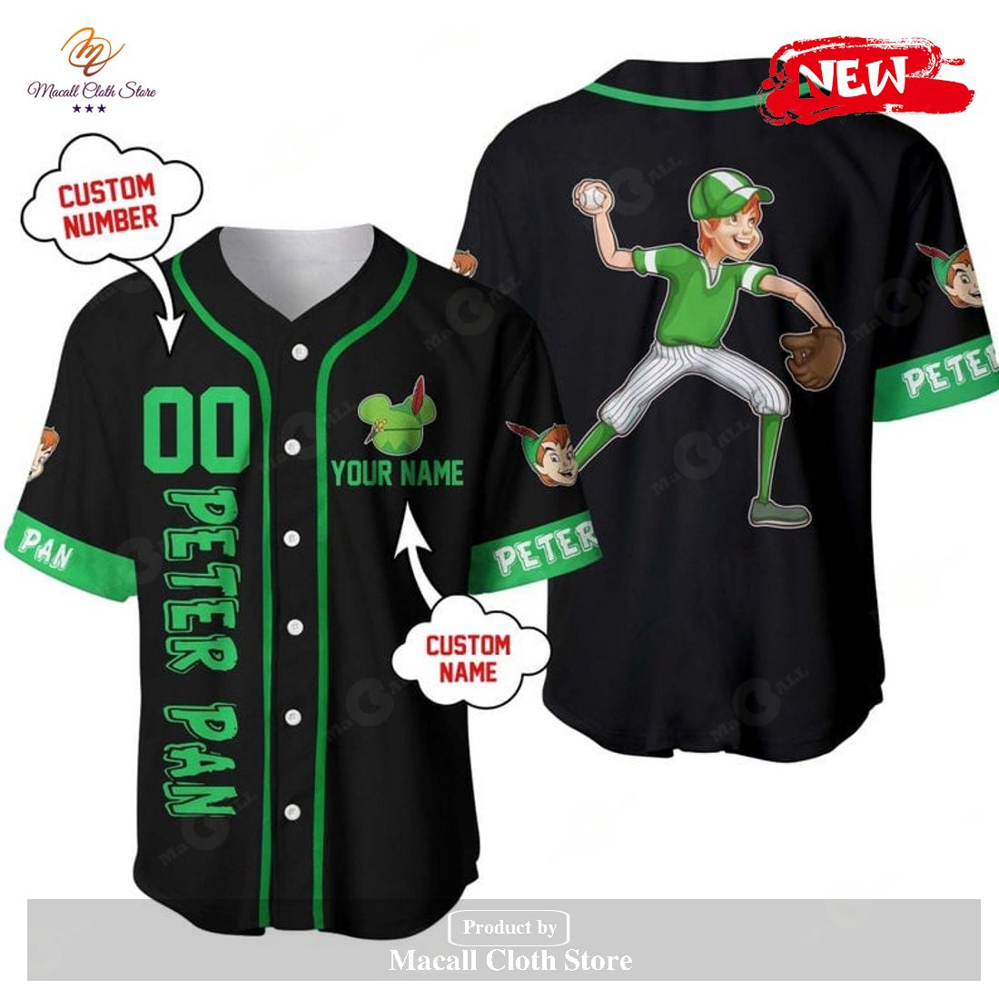 Personalized Peter Pan Playing Baseball All Over Print Black Baseball Jersey Trendy Fashion Style