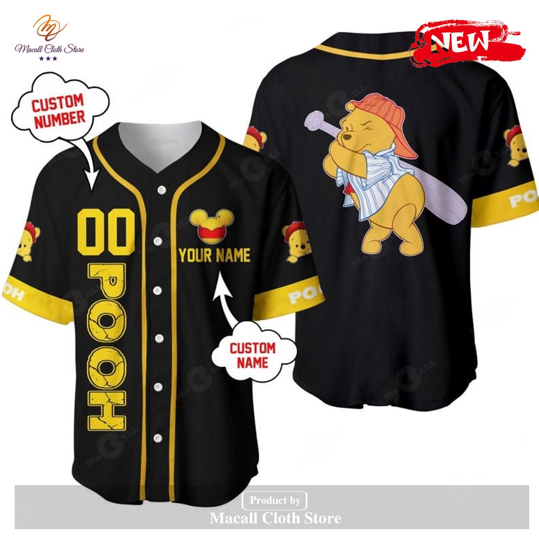 Personalized Winnie The Pooh Playing Baseball All Over Print Black Baseball Jersey
