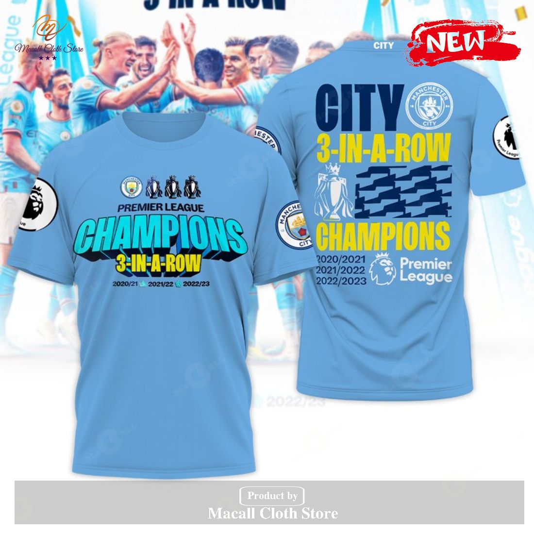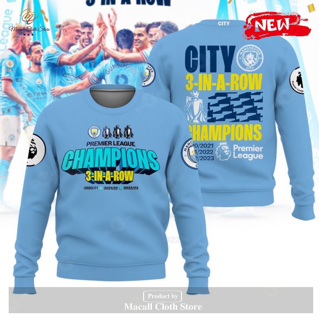 Premier League Champions Manchester City 3 In A Row 2023 V7 Hoodie Sweatshirt 3D Trendy Fashion Style