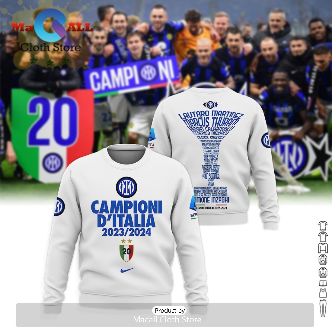 Premium Inter Milan D’Italia 23-24 Campioni White Hoodie Trendy Fashion Hoodie, Zipper Hoodie, Fleece Zipper Hoodie, Dress Hoodie, T-Shirt, Long Sleeves, Sweatshirt and Long Pant