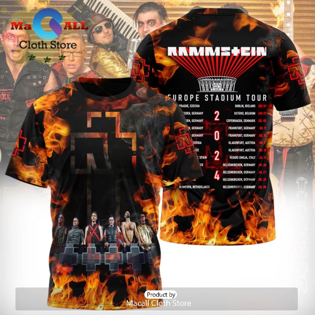 Rammstein Europe Stadium Tour 2024 Fire Design 3D Hoodie Information: