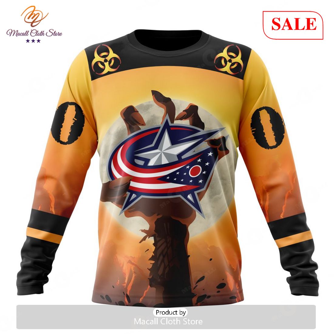 SALE NHL Personalized Columbus Blue Jackets Special Zombie Design For Halloween Hoodie Sweatshirt 3D Trendy Fashion Style