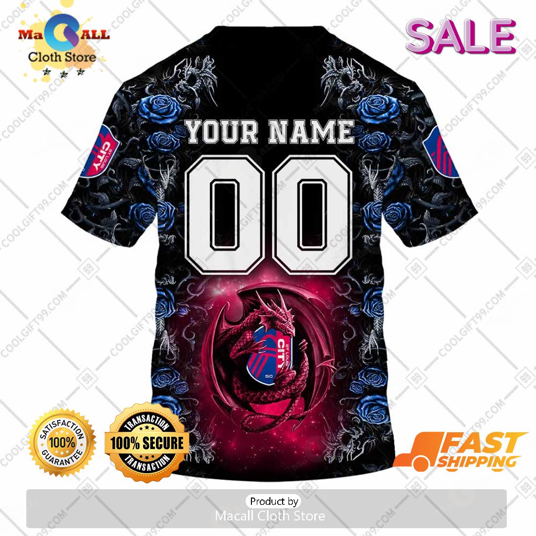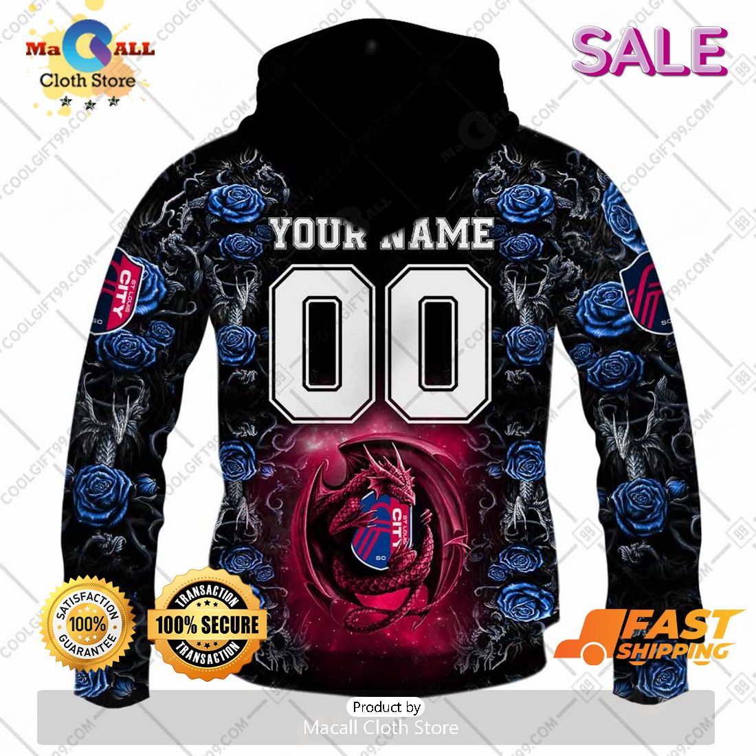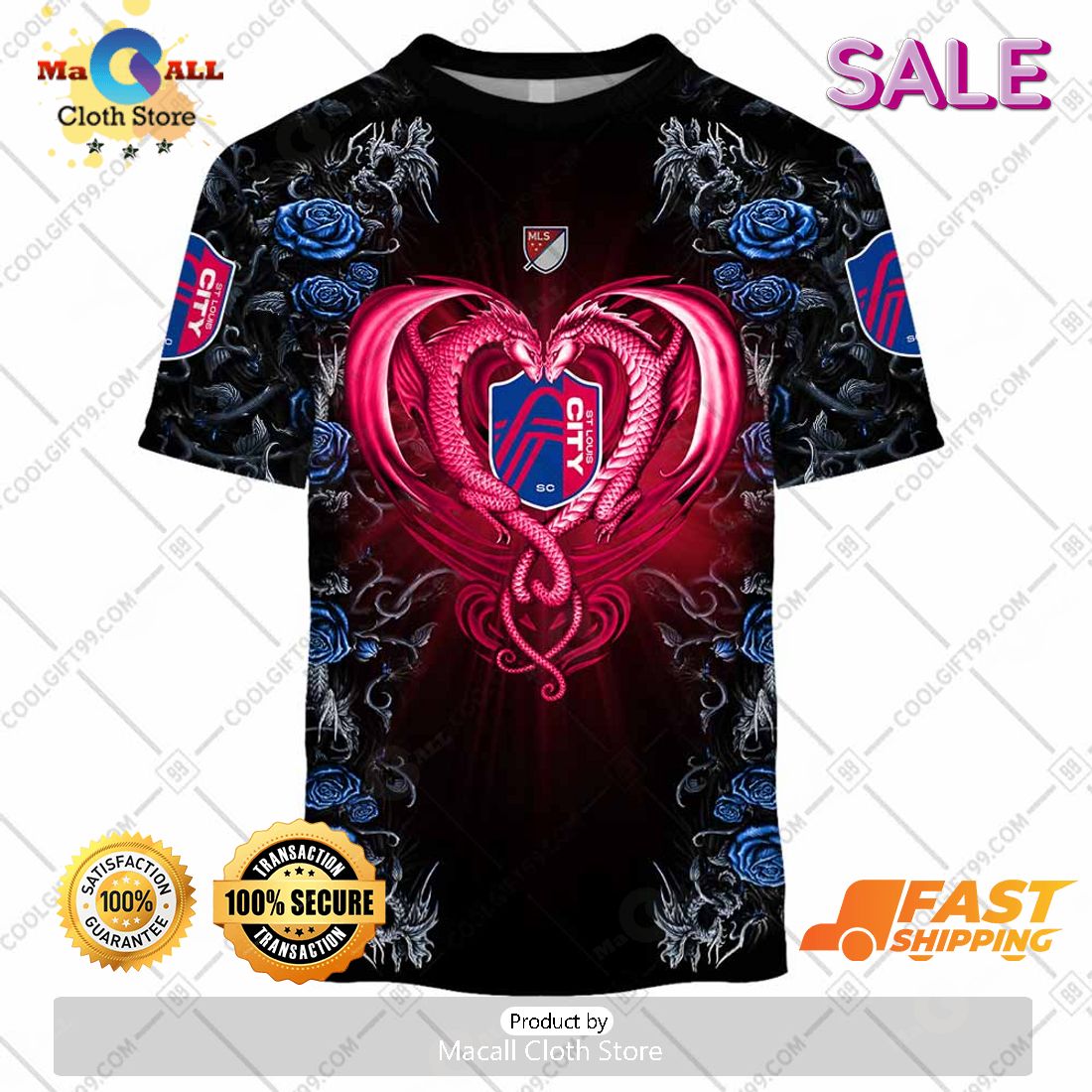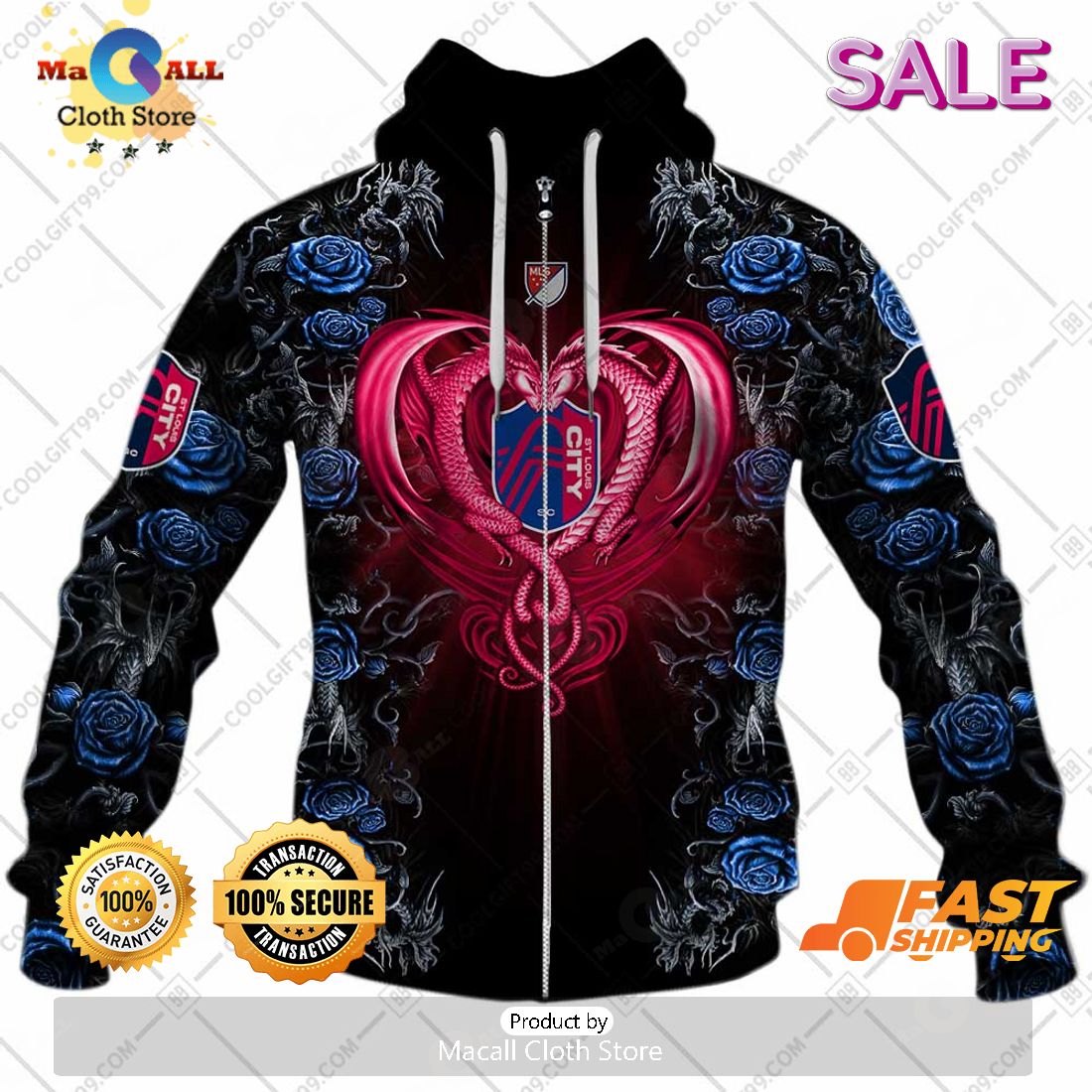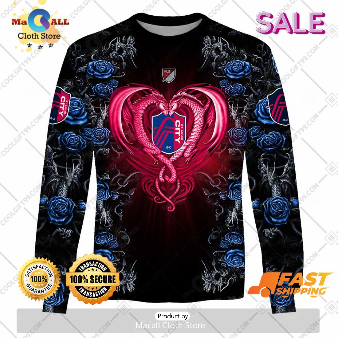SALE Personalized MLS St. Louis City SC Roses Dragon Couple Hoodie Sweatshirt 3D Information: