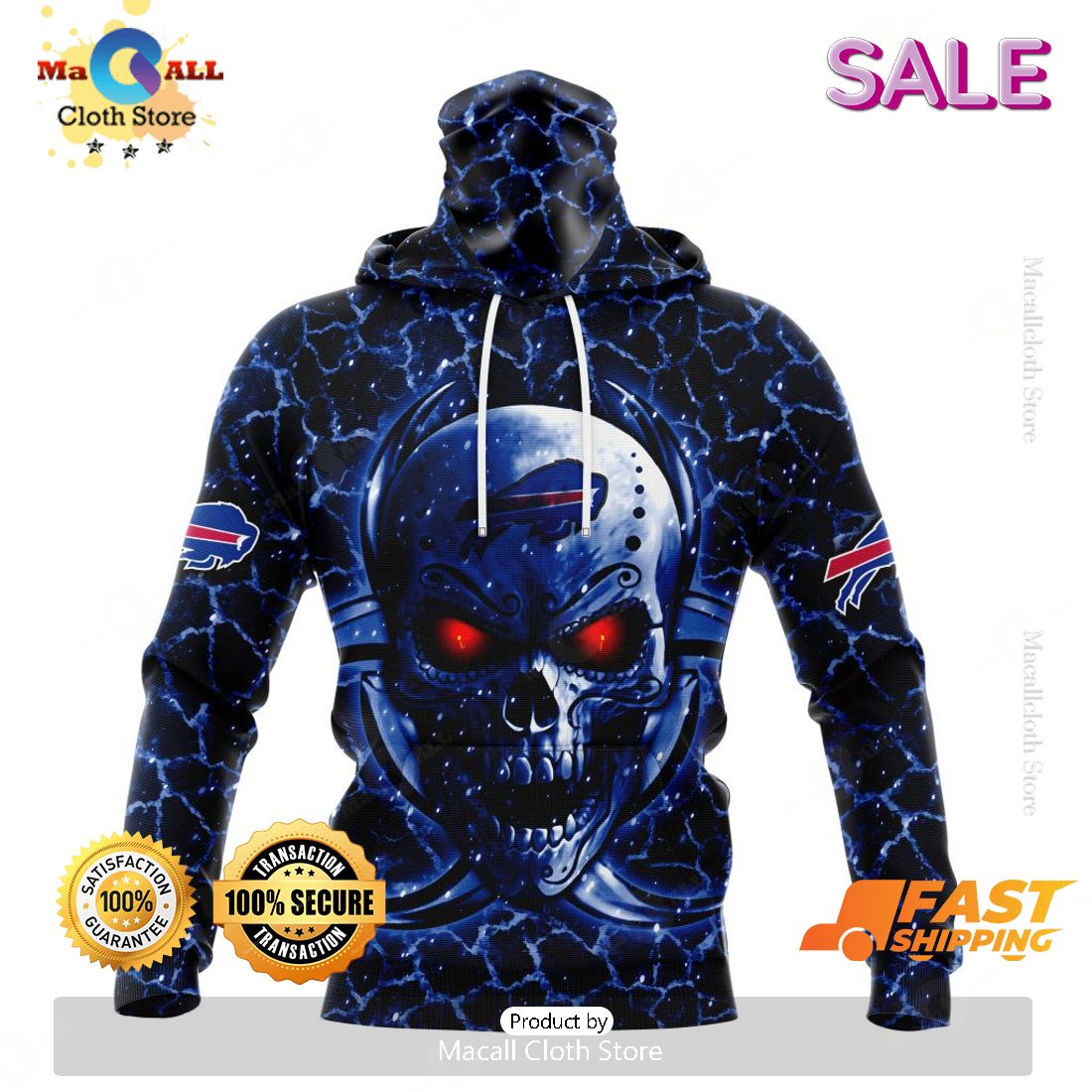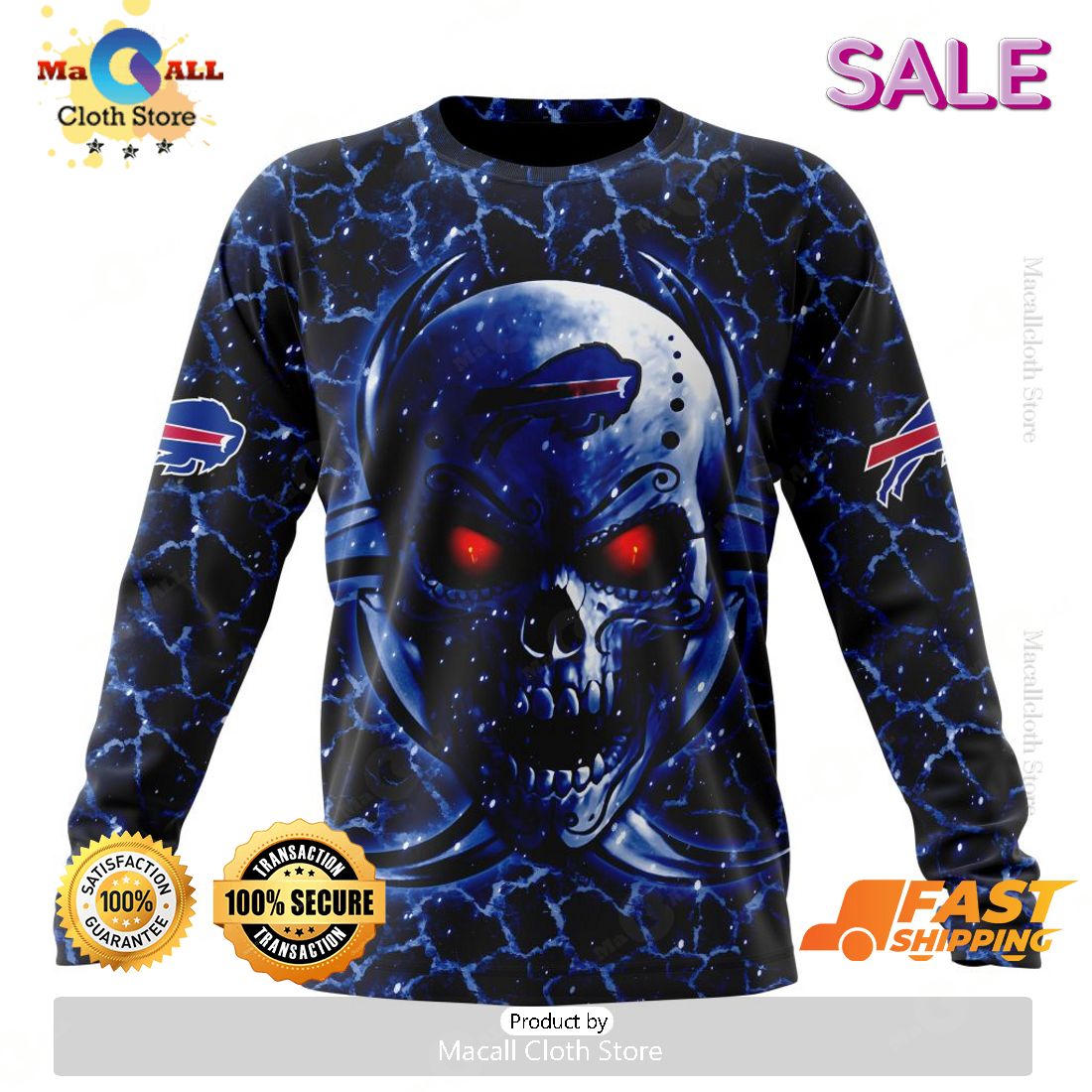 SALE Personalized NFL Buffalo Bills New Skull Art Design Hoodie Sweatshirt 3D Information: