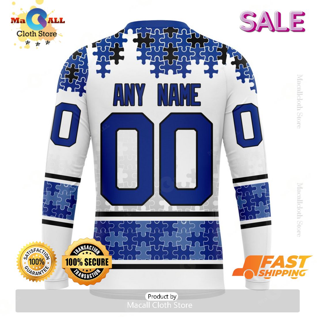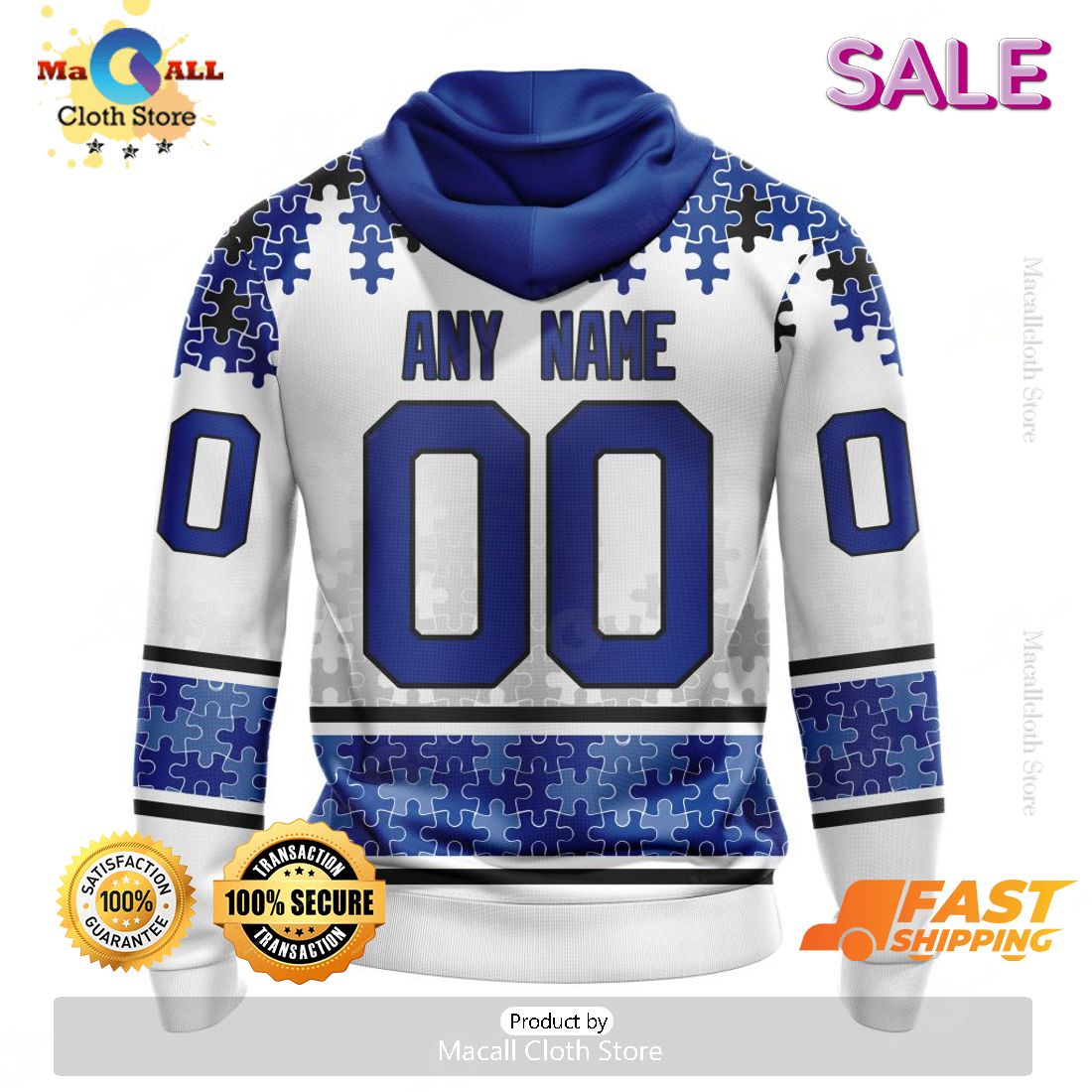 This SALE Personalized NHL Buffalo Sabres Classic Autism Awareness Design Hoodie is perfect for supporting a great cause. The design is made in the classic colors of the Buffalo Sabres and features the Autism Awareness logo. The hoodie is made from lightweight and comfortable cotton fabric and provides a soft feel for those of any age. It can be personalized with a name, number, or phrase so you can make a statement that’s unique and special. The hood also has a pouch pocket and drawcord for maximum comfort. It’s the perfect way to show your support and solidarity for promoting Autism Awareness.