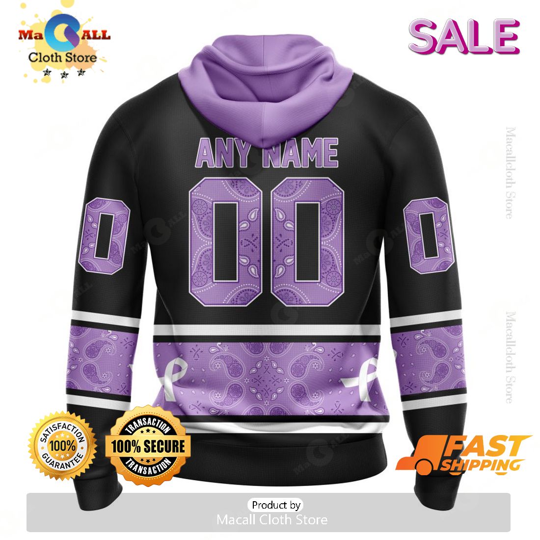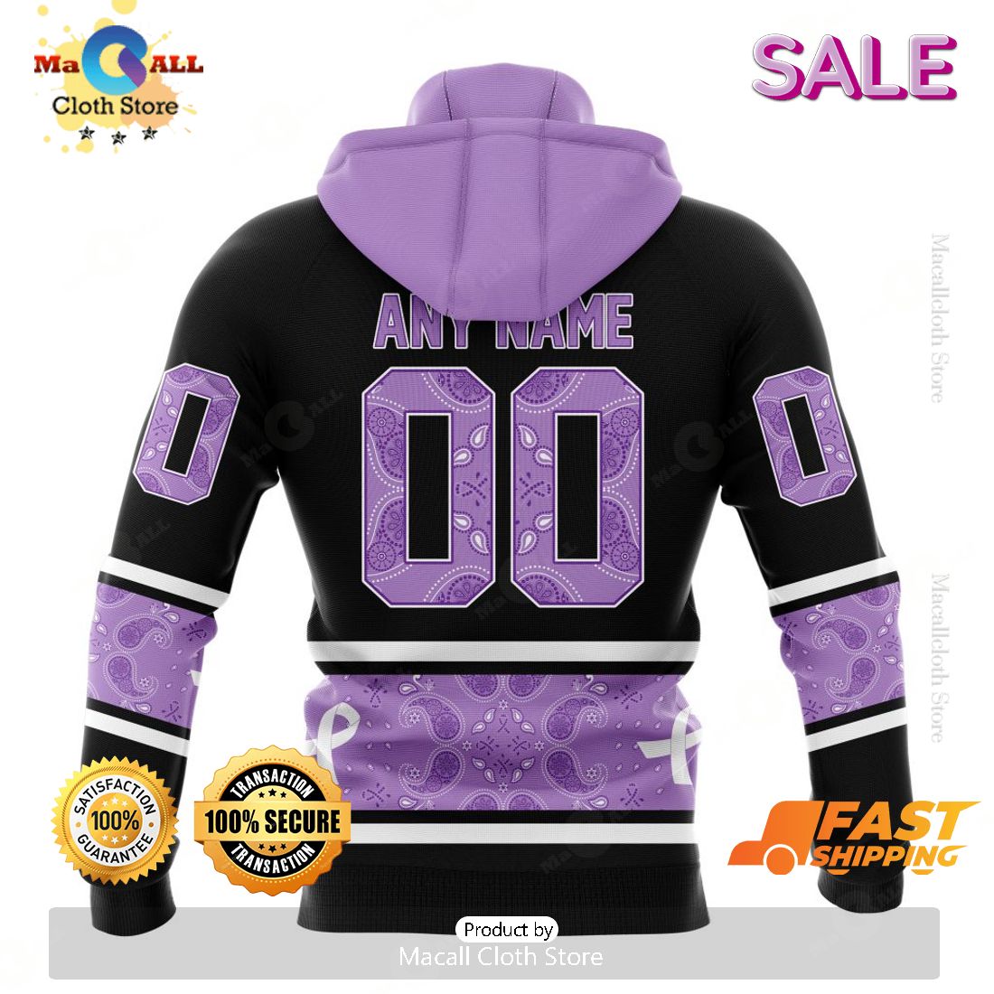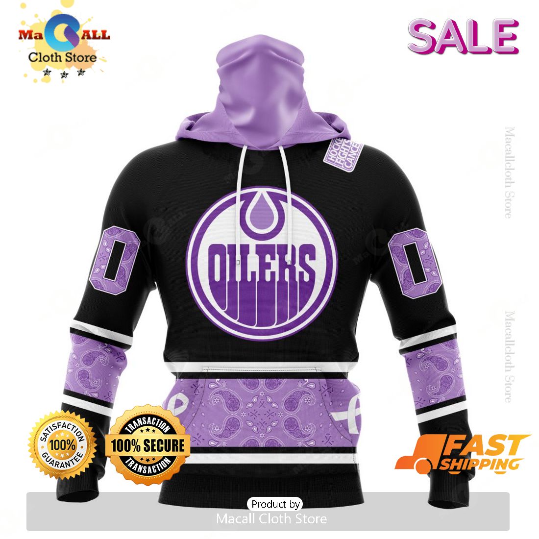 SALE Personalized NHL Edmonton Oilers Special Black And Lavender Hockey Fight Cancer Hoodie 3D Information: