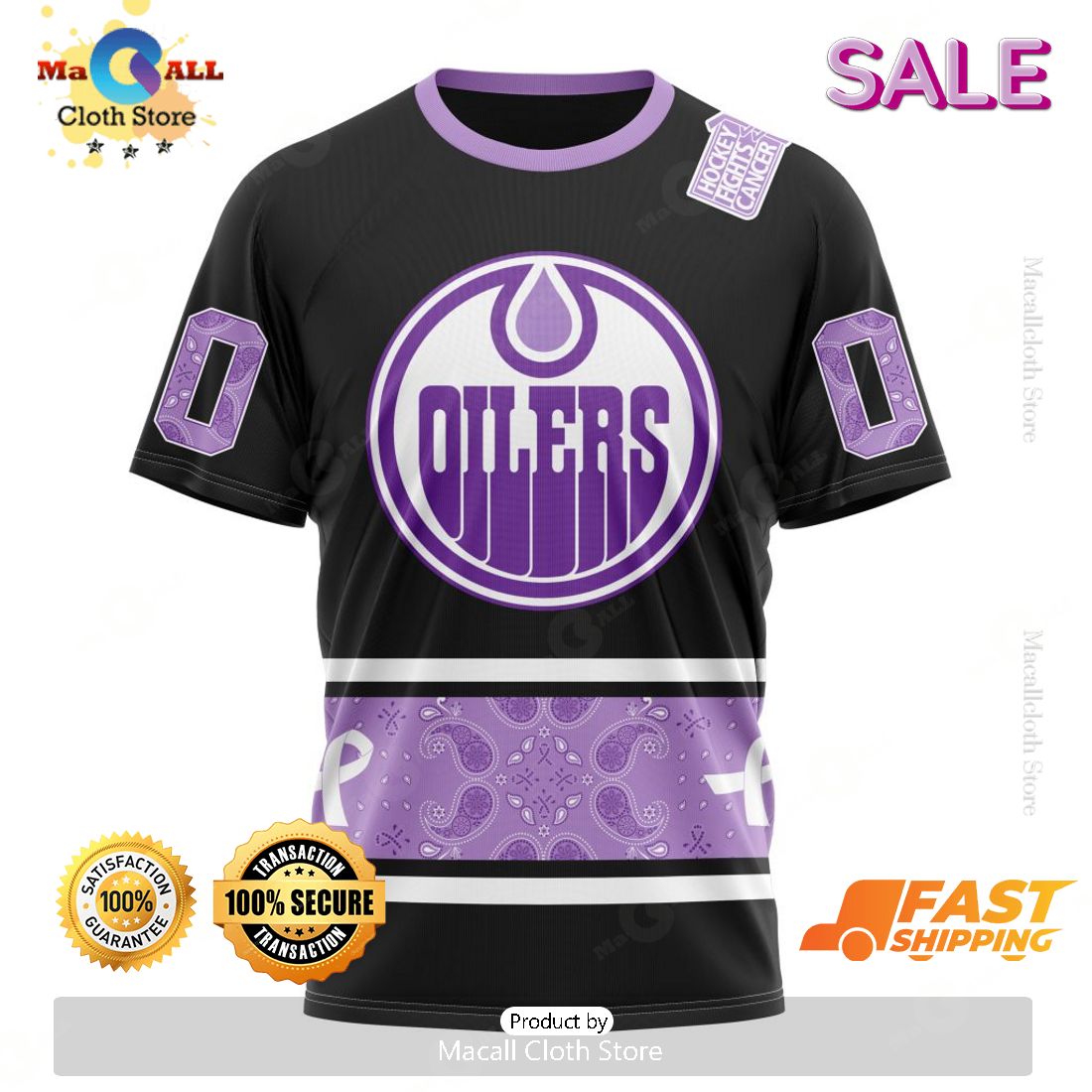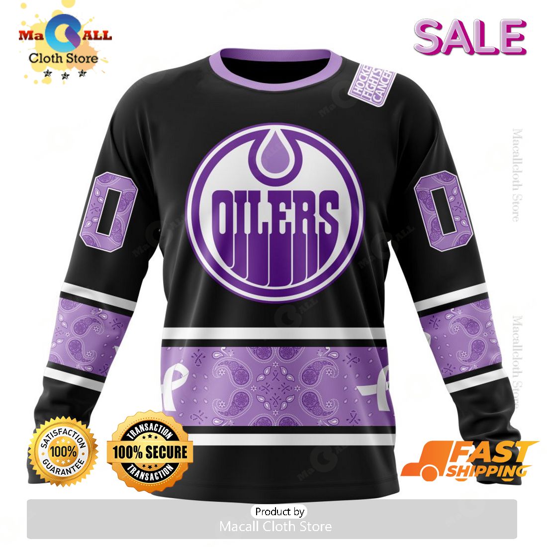 SALE Personalized NHL Edmonton Oilers Special Black And Lavender Hockey Fight Cancer Hoodie 3D Trendy Fashion Hoodie 3D, T-Shirt 3D, Long Sleeves, Sweatshirt, Pant 3D Style