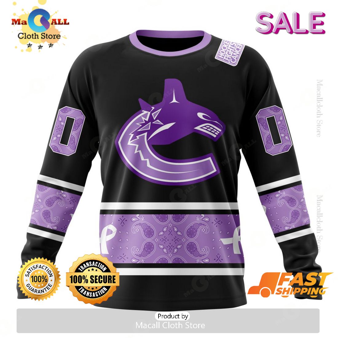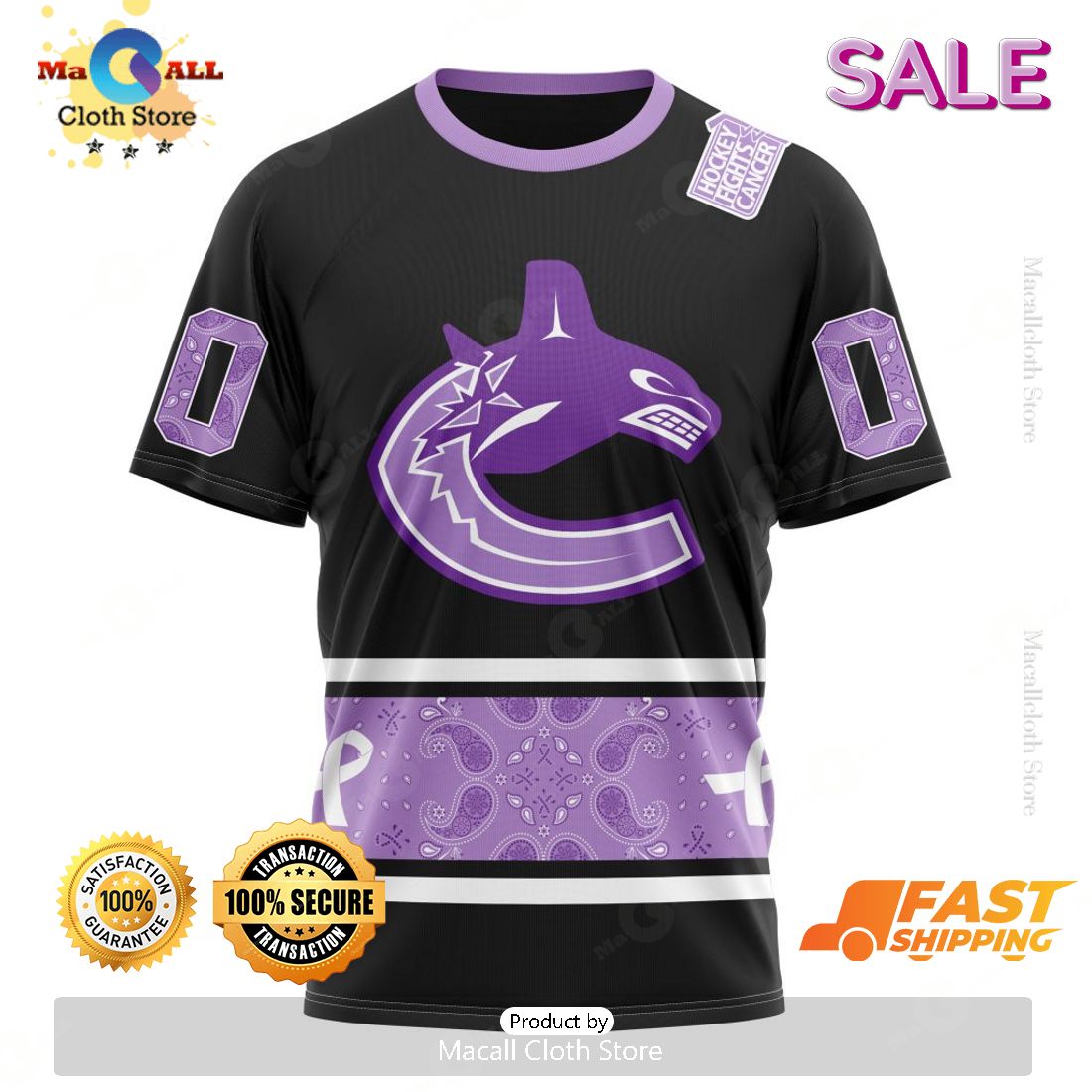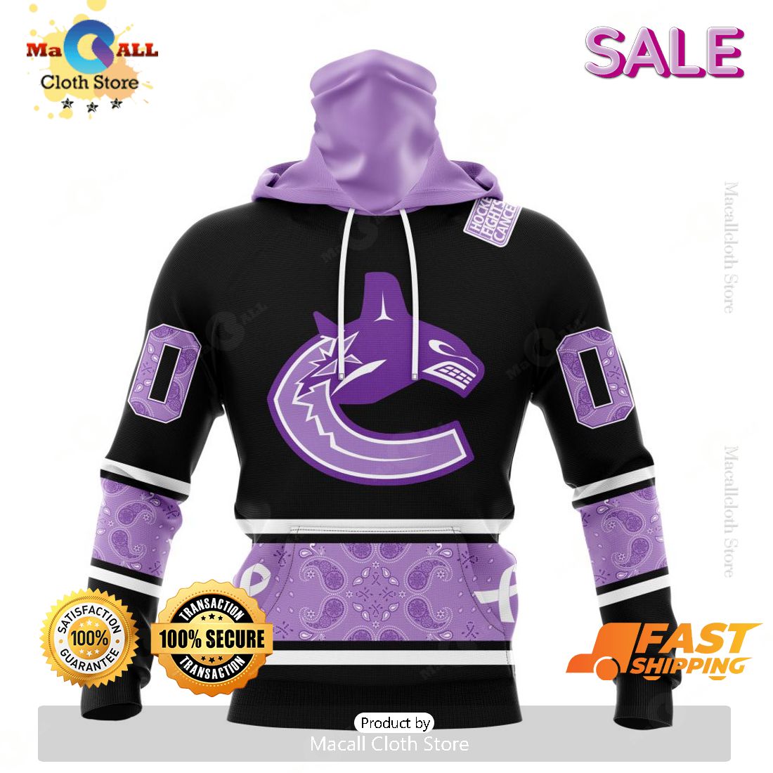 SALE Personalized NHL Vancouver Canucks Special Black And Lavender Hockey Fight Cancer Hoodie 3D Information: