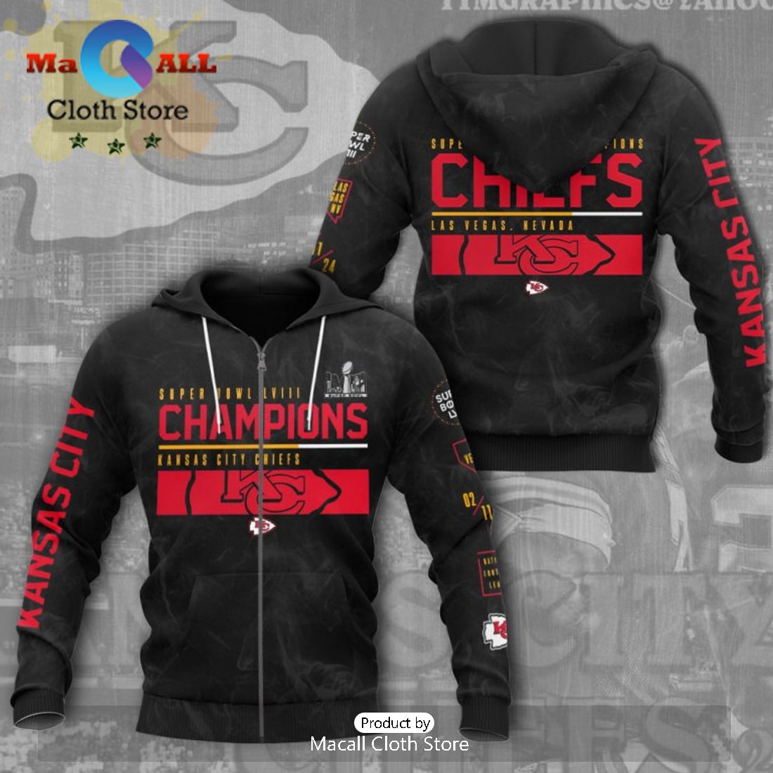Super Bowl LVIII Champions Of Kansas City Chiefs Black Style Hoodie Trendy Fashion Hoodie, Zipper Hoodie, Fleece Zipper Hoodie, Dress Hoodie, T-Shirt, Long Sleeves, Sweatshirt and Long Pant