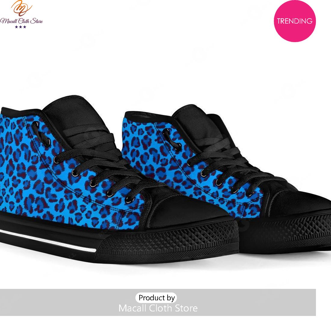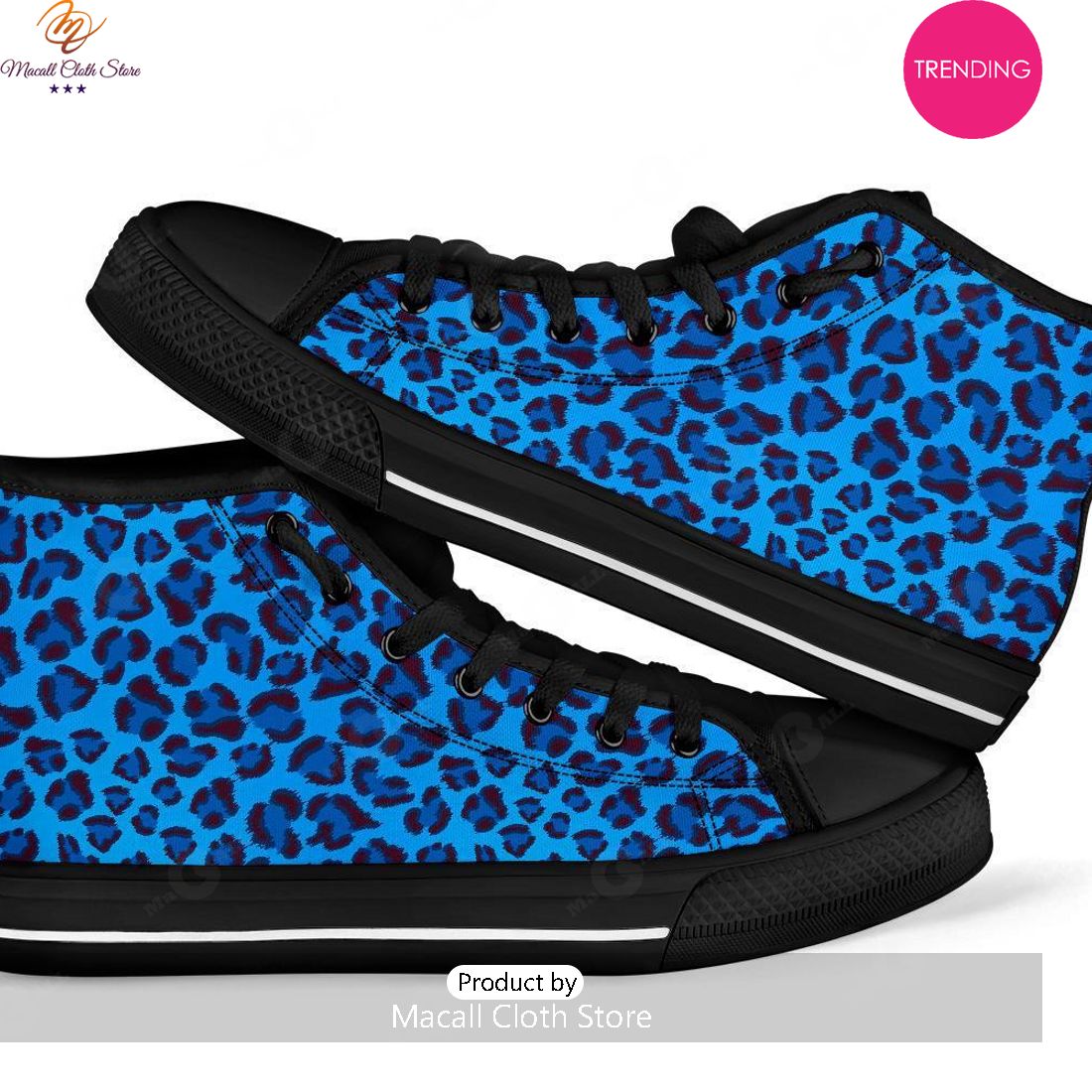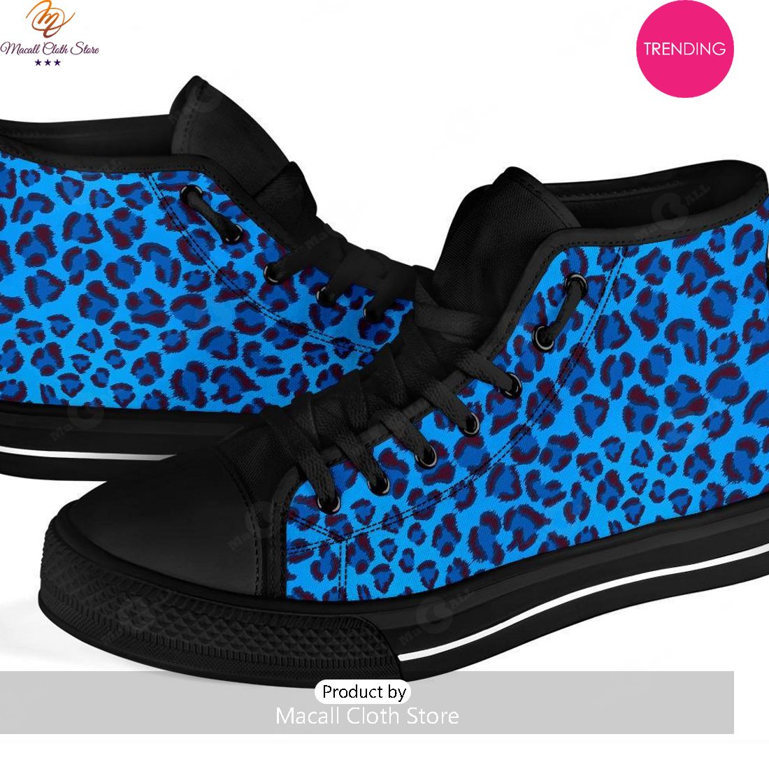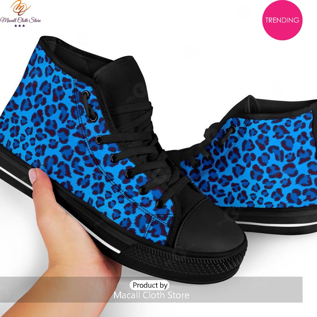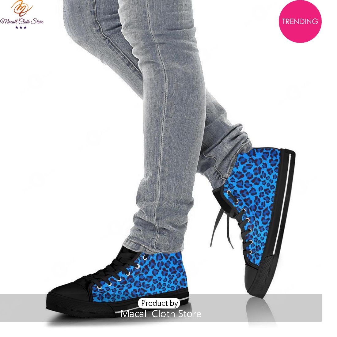 [TRENDING EDITION] Blue Cheetah Leopard Pattern Print Men Women’s High Top Canvas Shoes | Canvas High Top Shoes – Trendy Canvas Sneakers