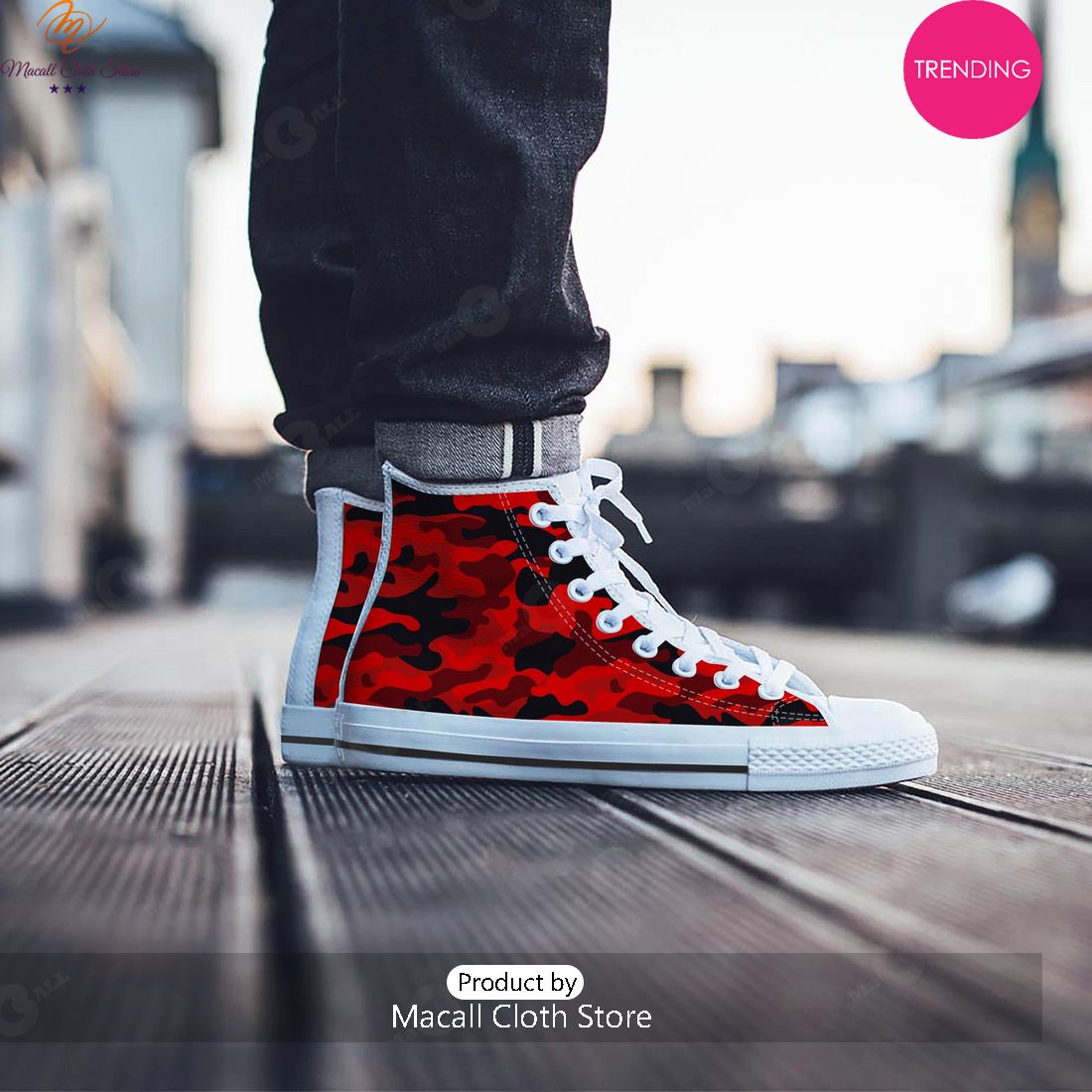 [TRENDING EDITION] Red Camo Print Men’s High Top Canvas Shoes | Canvas High Top Shoes – Trendy Canvas Sneakers
