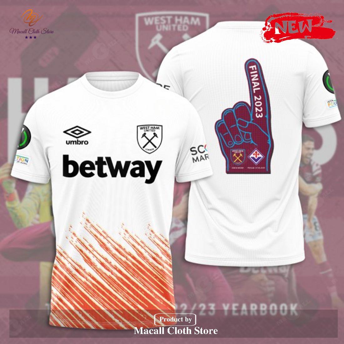 West Ham United Final 2023 Winners White Hoodie Sweatshirt 3D Information: