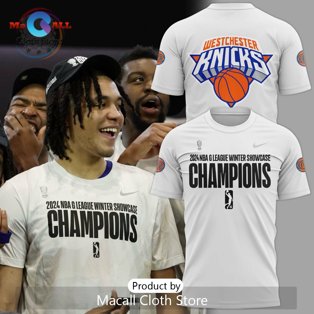 Westchester Knicks 2024 Winter Champions White Hoodie 3D Trendy Fashion Hoodie, Zipper Hoodie, Fleece Zipper Hoodie, Dress Hoodie, T-Shirt, Long Sleeves, Sweatshirt and Long Pant
